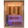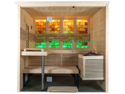 Sauna Family L představuje plně vybavené řešení pro domácí relaxaci. Tento model o rozměrech 1960 x 1590 x 2040 mm nabízí dostatek prostoru pro pohodlné využití až pěti osobami. Obsahuje výkonná kamna sentiotec 190E s výkonem až 9 kW, řídicí jednotku Pro D2i a ovládací panel pro infračervený zářič ECO IR-350W fullspectrum, který je součástí. . Součástí je také integrované RGBW-LED osvětlení, které vytváří příjemnou atmosféru a umožňuje přizpůsobit barvu světla podle nálady. Kabina je vyrobena z masivního smrkového dřeva s interiérem z lípy, doplněna o tři široké lavice a bezpečnostní ohrádku kolem kamen. Skleněné dveře a panely z tvrzeného skla dodávají sauně moderní a elegantní vzhled, zatímco kvalitní materiály a robustní konstrukce zajišťují dlouhou životnost a spolehlivý provoz.